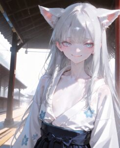 銀髪に日差しを受けて輝くケモミミの少女。
