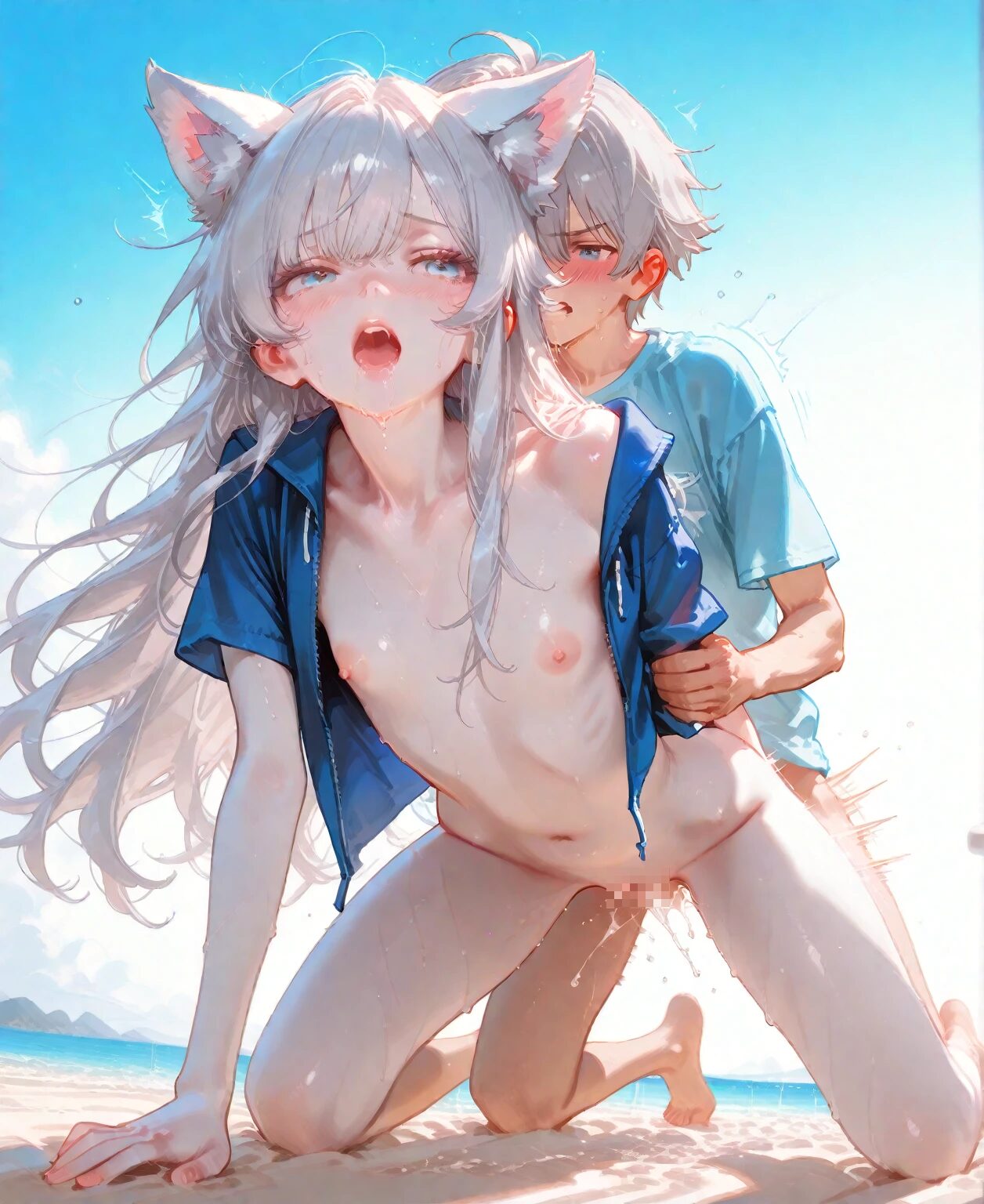 DLsiteにて作成したAIイラストの販売を開始しました。銀狼娘ちゃんです、今回は砂浜での水着着衣に挑戦してみました。